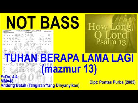 Panduan latihan not suara Bass untuk koor berjudul Tuhan berapa lama lagi (Mazmur 13) ciptaan Pontas Purba tahun 2005. Koor dengan kunci dasar F=Do modulasi ke G=Do. Tempo awal MM=45 naik bertahap ke 54 sampai 100 BPM. Latihan awal dengan tempo lebih lambat (40), lanjut latihan akhir dengan tempo aslinya (45). Koor dinyanyikan dengan suara andung batak, atau berarti tangisan yang dinyanyikan.